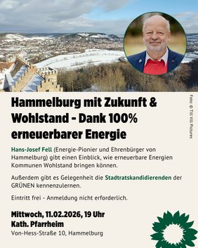 Der bekannte Hammelbuger Energiexperte, Energie-Pionier und Ehrenbürger Hans-Josef Fell gibt am